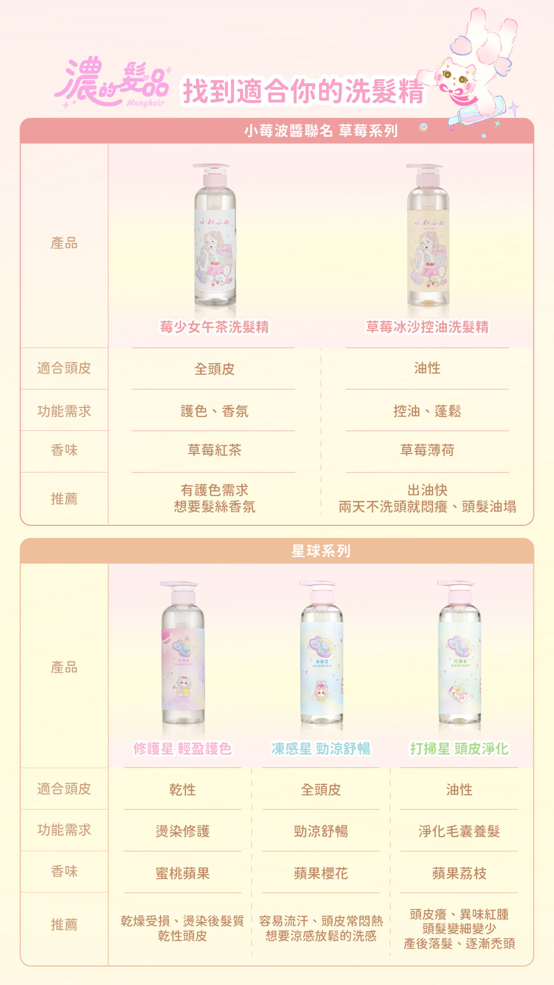 我們知道洗髮精不是隨便挑就好,所以每一款「濃的」都是用心研發、通過SGS認證,讓你洗頭不只是香香的,更能真的改善狀況 ✨