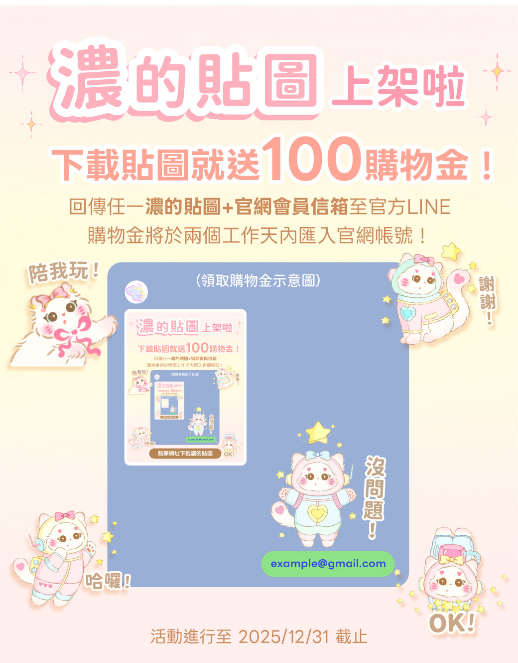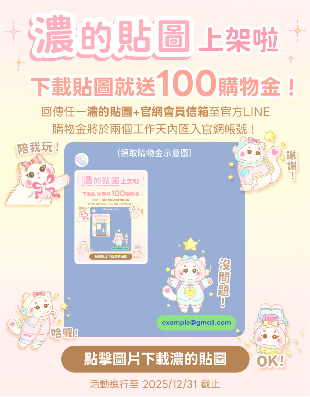 下載貼圖送100泡泡!2025 年 10 月 24 日 🧴濃濃貼圖來啦!!🐈🫧 只要回傳一個濃的貼圖+你的官網會員信箱,我們馬上送你💰100泡泡(可折抵$100唷!) 泡泡將在兩個工作天內入帳,快去下載貼圖、傳給朋友可愛暴擊吧!🫶🏻 點此下載濃的貼圖 上一 官網活動 洗護沐浴旅行組